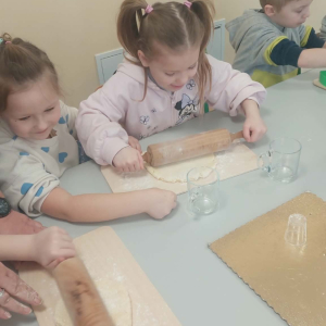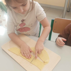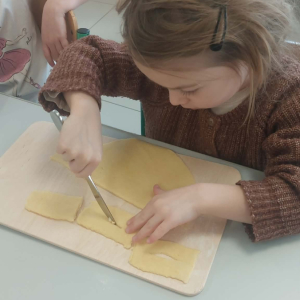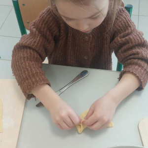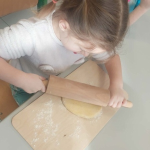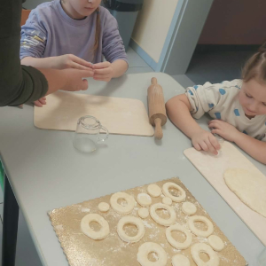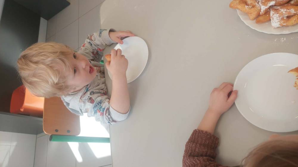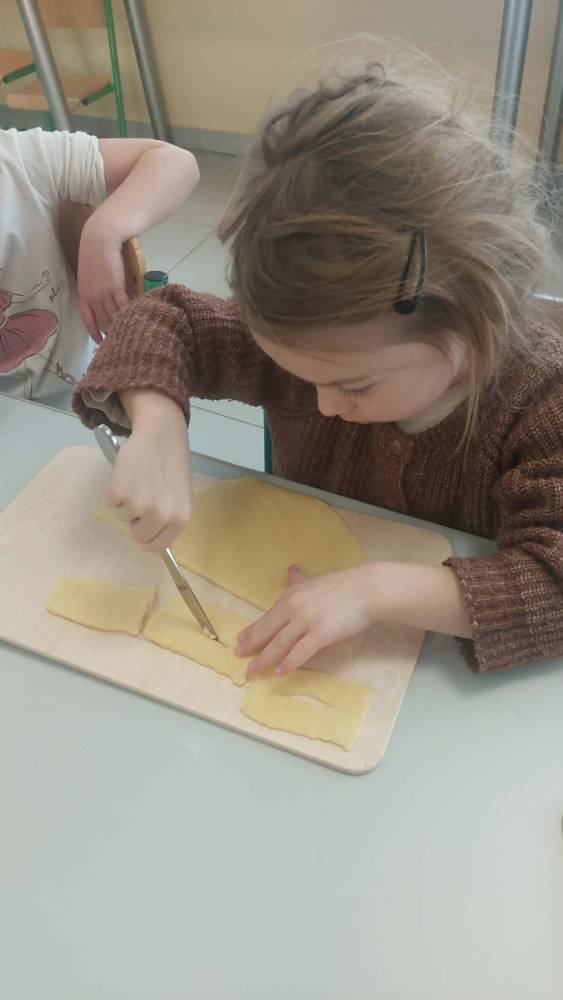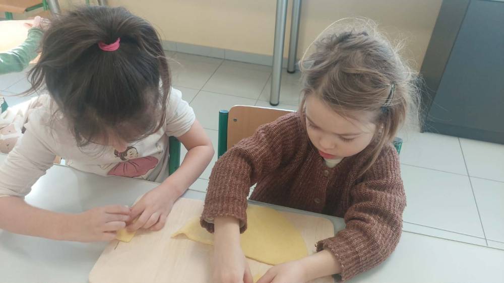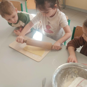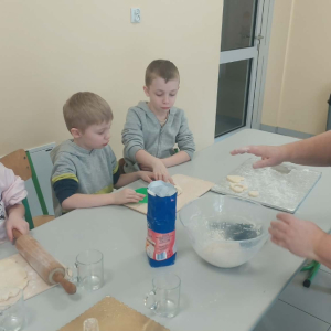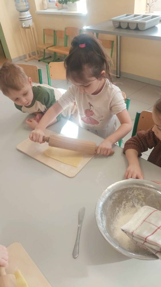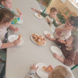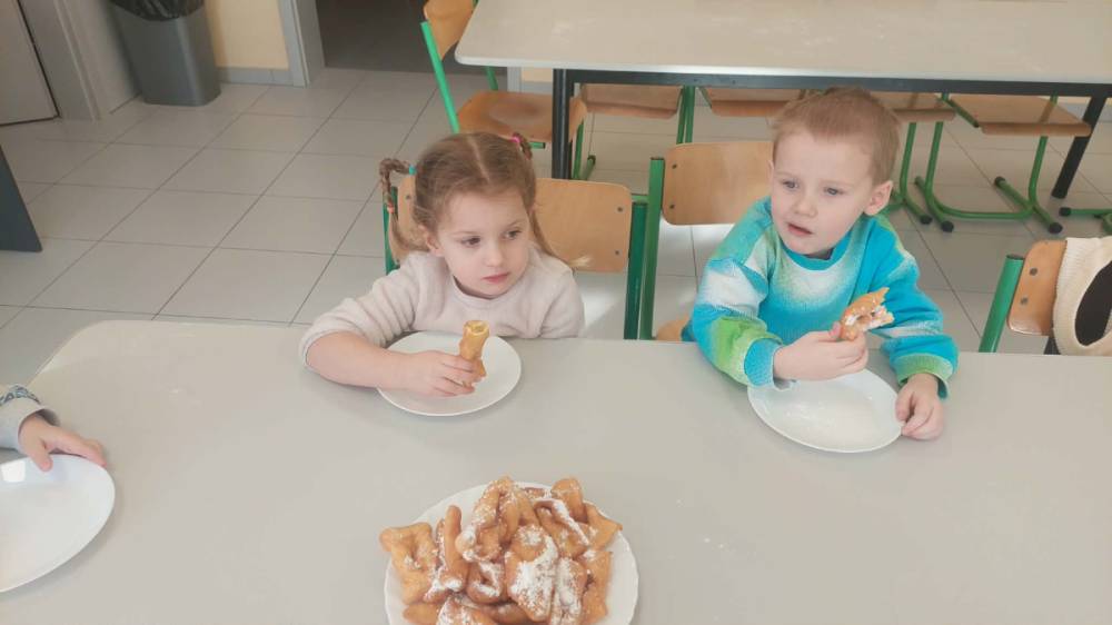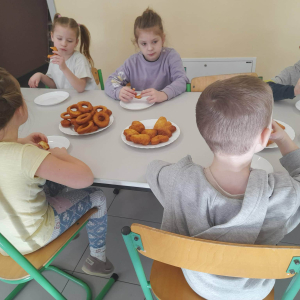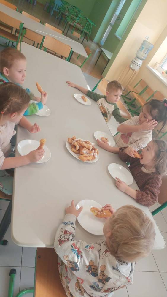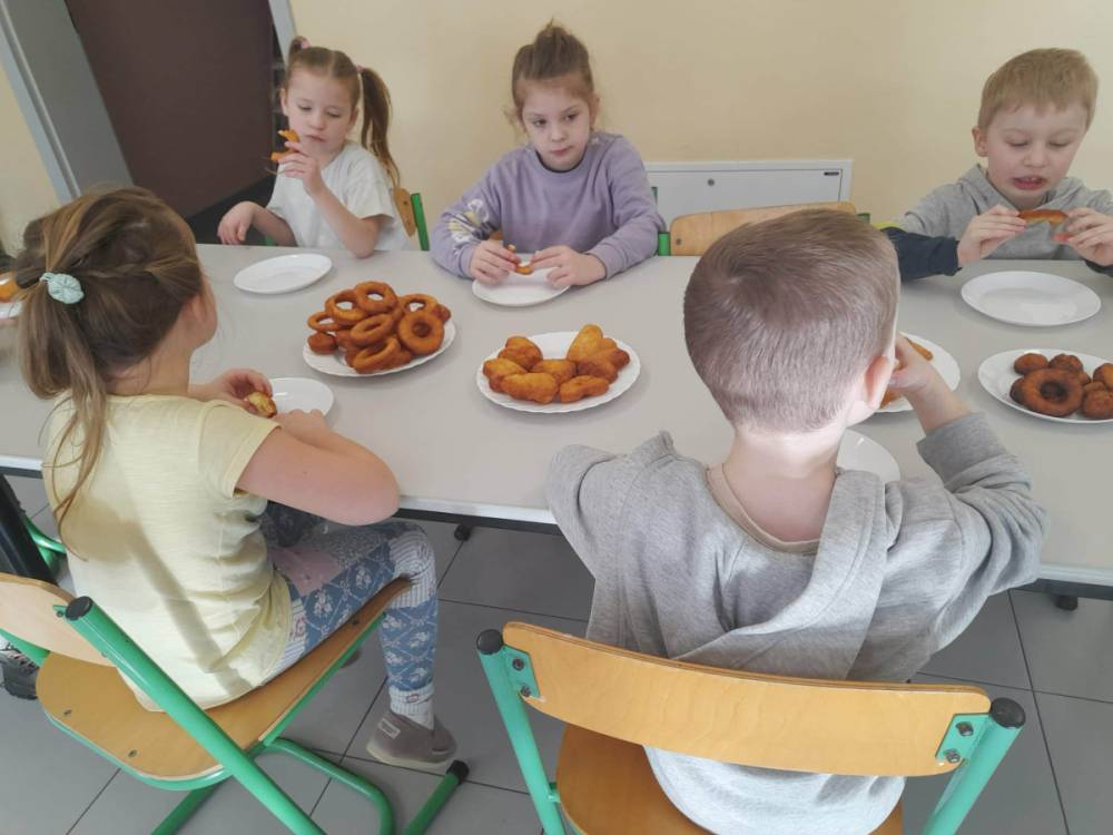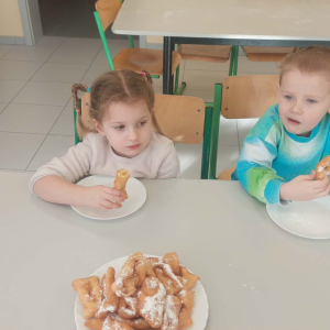 12 lutego w naszym przedszkolu obchodziliśmy wspólnie Tłusty Czwartek. Była to świetna okazja do zorganizowania zajęć kulinarnych dla naszych podopiecznych. Zuchy z panią Martą przygotowały według przepisu ciasto na oponki natomiast Smyki zajmowały się wałkowaniem i zawijaniem faworków. Dzieci uczyły się odmierzania składników, mieszania, zagniatania, wykrawania, ale przede wszystkim współpracy w grupie oraz czerpania radości z samodzielnego przygotowania tych pysznych słodkości.