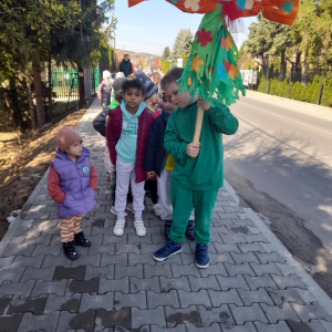 Po zakończeniu wizyty w bibliotece wyruszyliśmy do przedszkola i nieśliśmy nasz gaik oraz śpiewaliśmy piosenki o wiośnie. Nasz pochód był barwny, bo dzieci ubrały się dzisiaj w kolory wiosenne. Miłym akcentem był również fakt, że kierowcy przejeżdżający zwalniali , uśmiechali się na widok marzanny. Mam nadzieję , że dzisiejszy dzień dostarczył dzieciom wielu pozytywnych wrażeń.