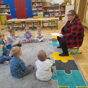 - wysłuchały bajki terapeutycznej o Zosi i Jasiu, którzy lubili pomagać innym, zarówno ludziom, jak i zwierzętom;