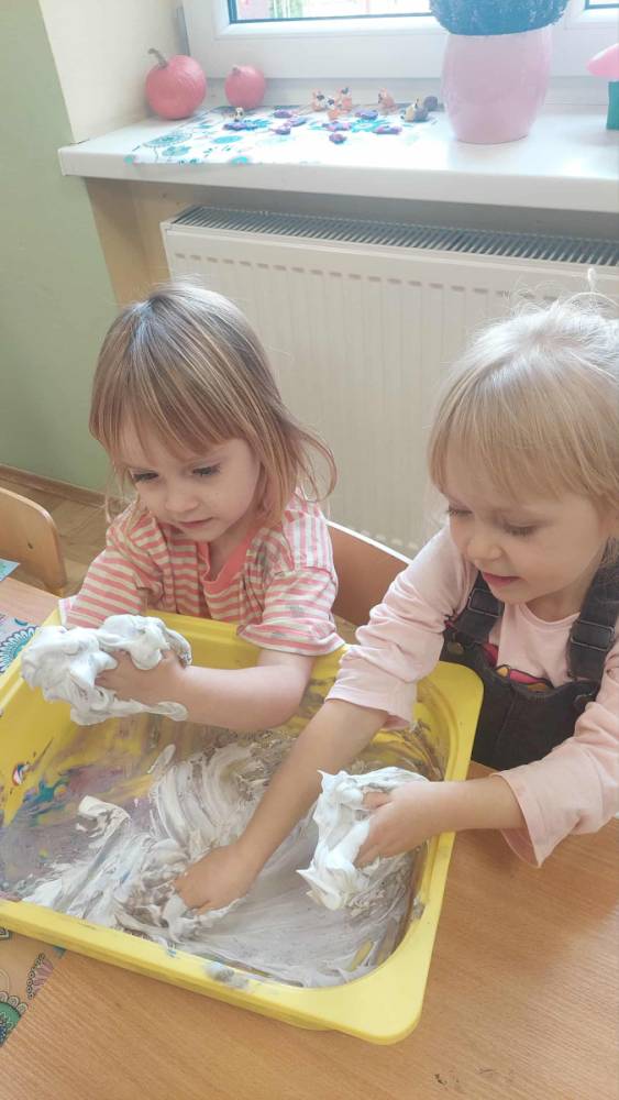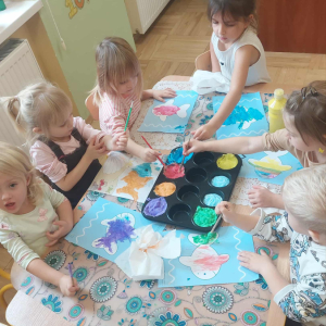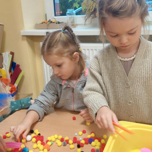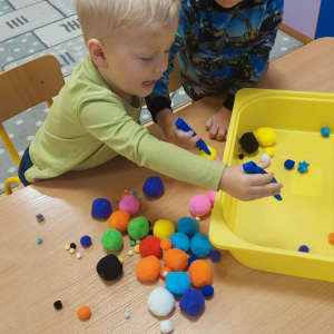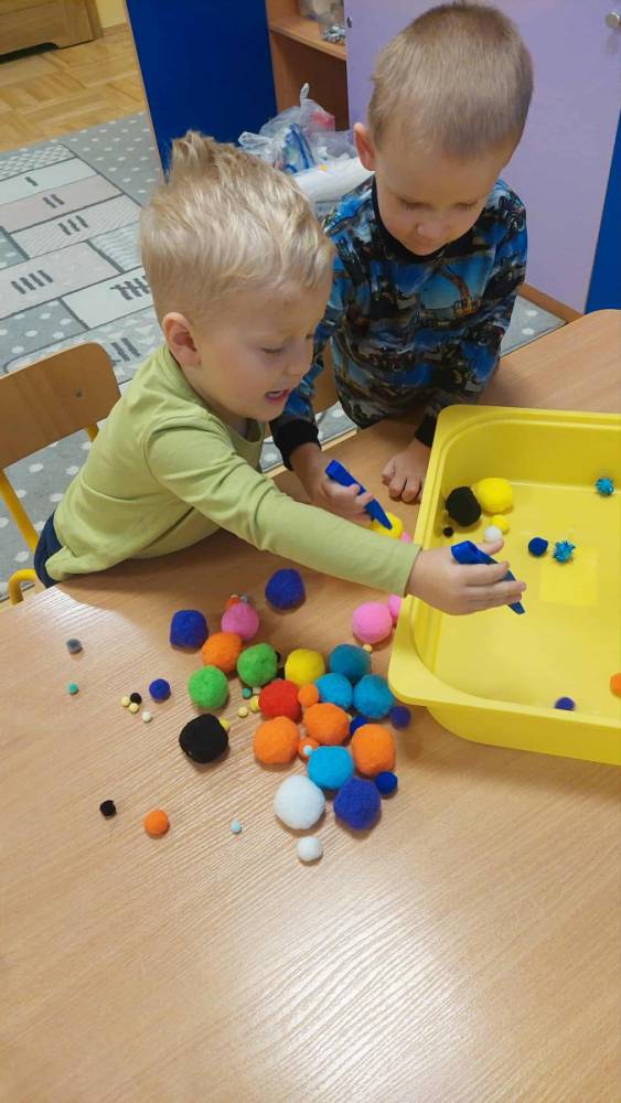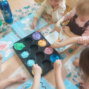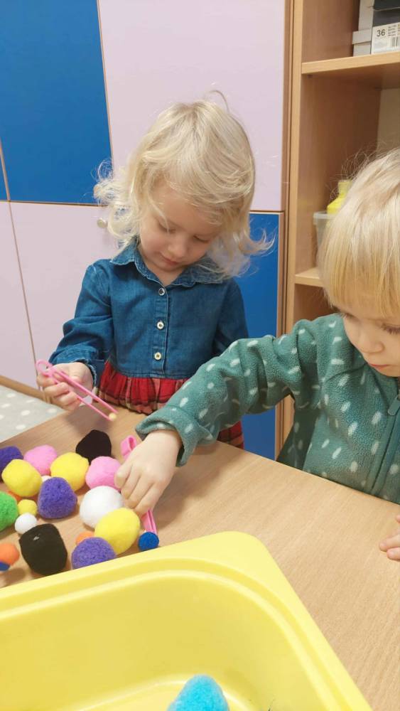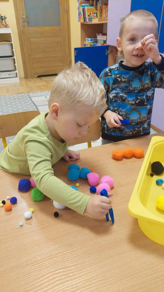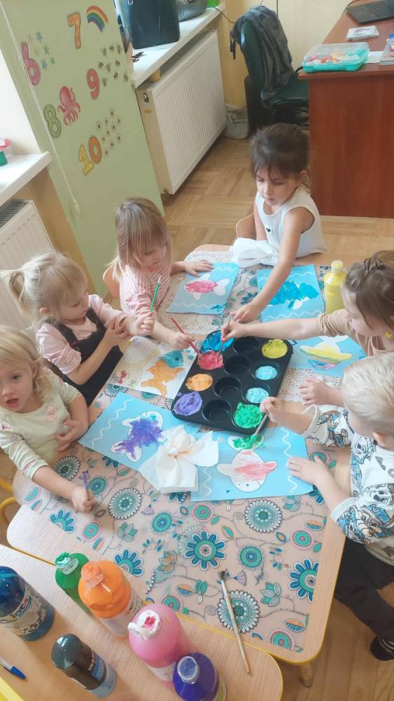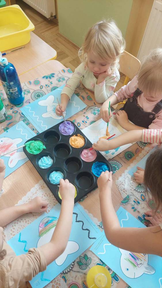 Piankowe farby, pomponiki, malowanie palcami i łowienie gumeczek