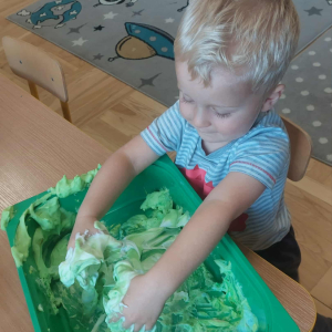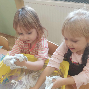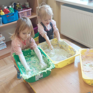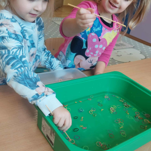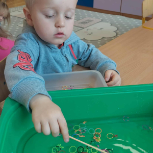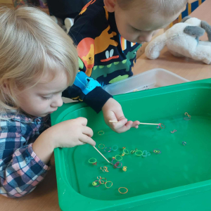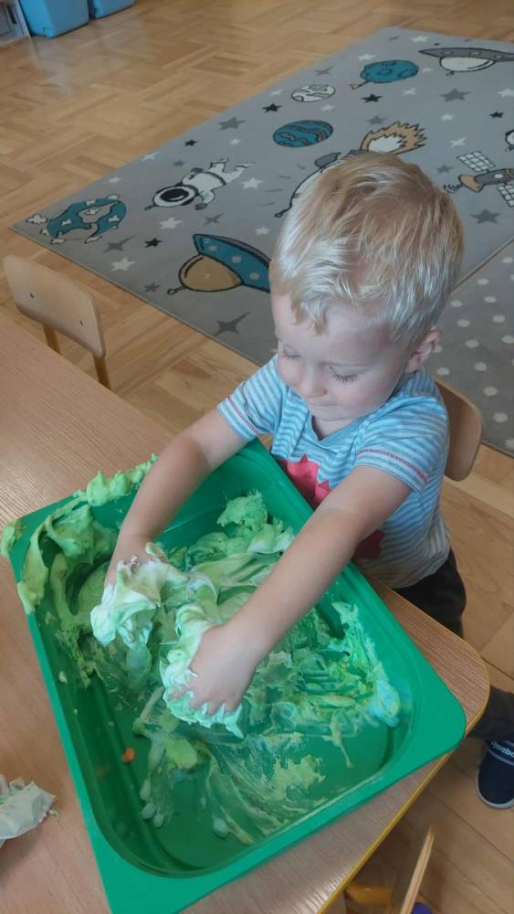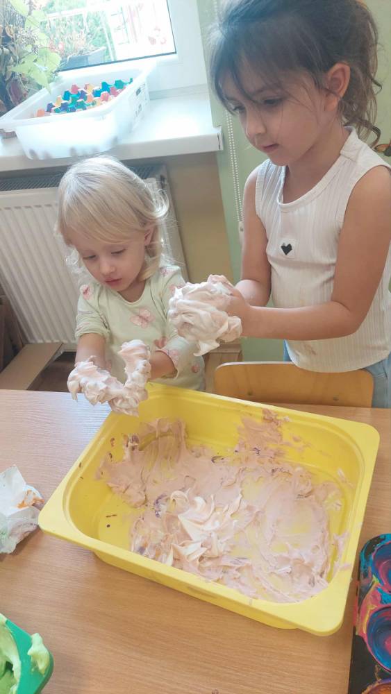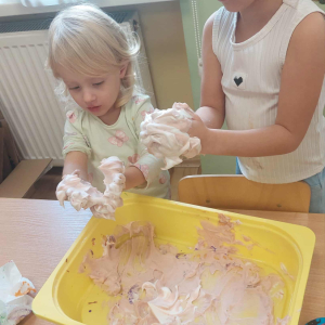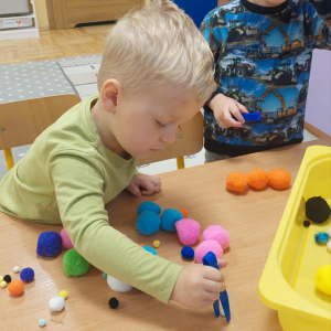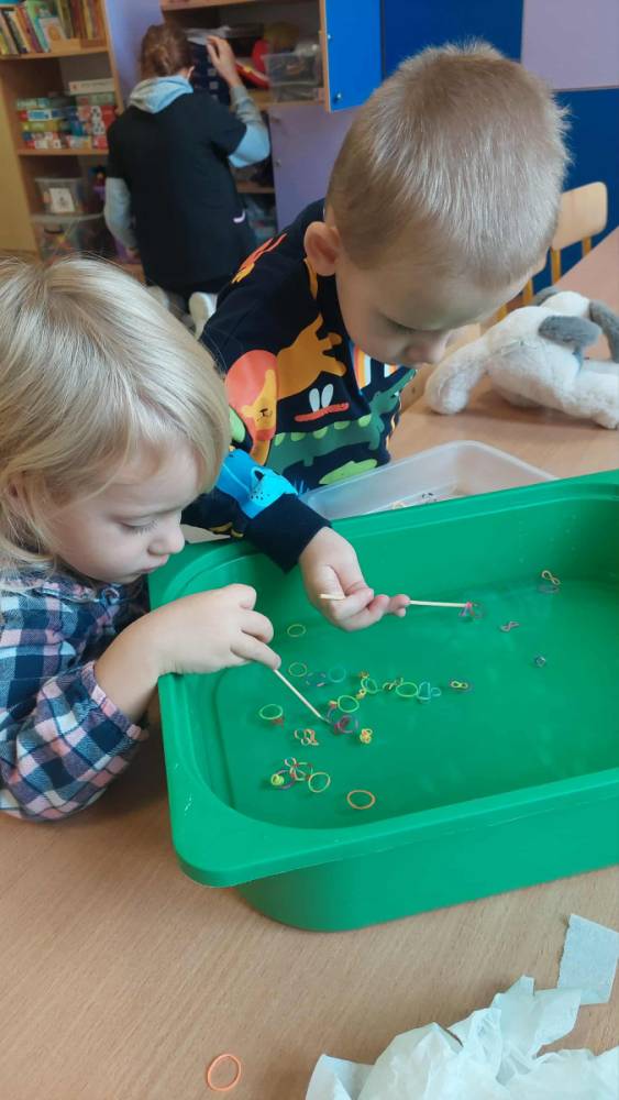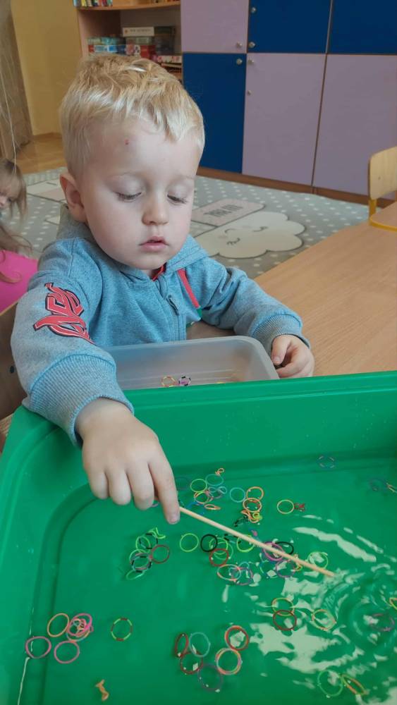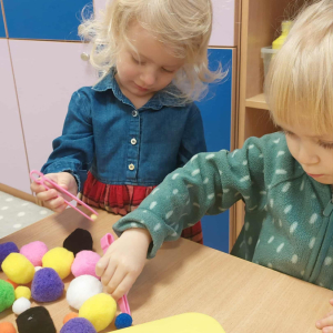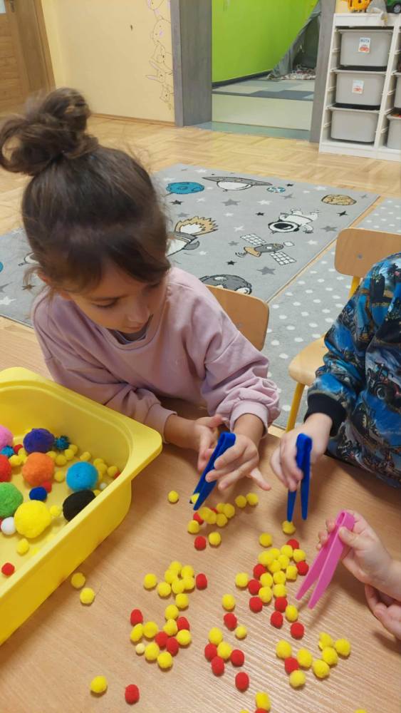 Piankowe farby, pomponiki, malowanie palcami i łowienie gumeczek