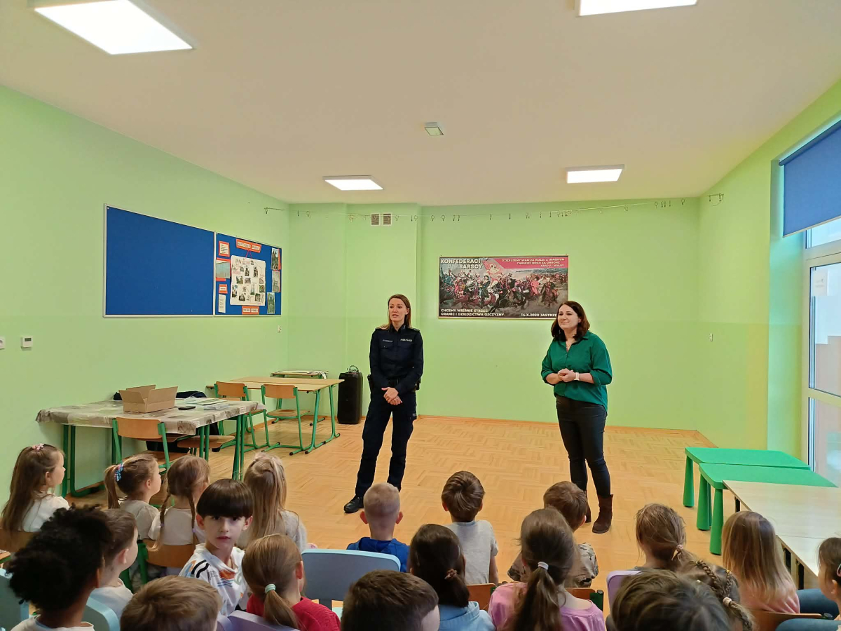 W naszej szkole odbyła się wyjątkowa pogadanka dotycząca bezpieczeństwa podczas ferii zimowych. Gościem spotkania była pani policjant Jolanta Stokłosa, która w bardzo ciekawy i przystępny sposób opowiedziała dzieciom, jak bezpiecznie spędzać zimowy czas.