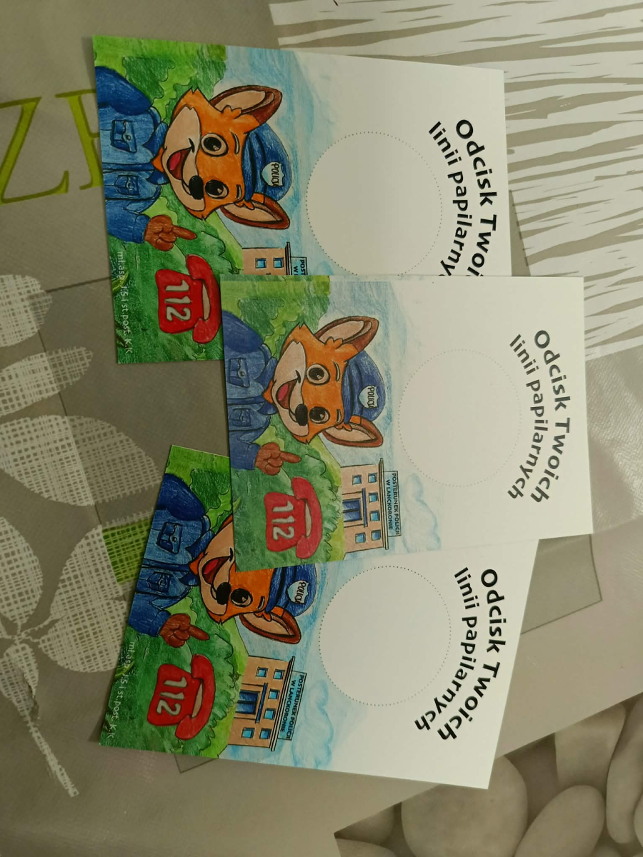 Spotkanie przebiegło w miłej atmosferze, a dzieci chętnie brały udział w rozmowie i odpowiadały na pytania. Na zakończenie każde dziecko otrzymało specjalną kartę „Lankuś uczy bezpieczeństwa na drodze”. Dodatkową atrakcją było to, że dzieci mogły odcisnąć swoje linie papilarne na otrzymanych kartach, co wzbudziło duże zainteresowanie i radość uczestników.