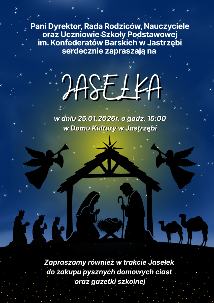 Serdecznie zapraszamy na Jasełka, które odbędą się 25 stycznia 2026 roku o godz. 15.00 w Domu Kultury w Jastrzębi. Wspólnie przeżyjmy wyjątkową, pełną ciepła i radości opowieść bożonarodzeniową.