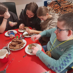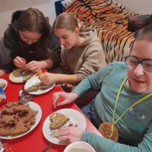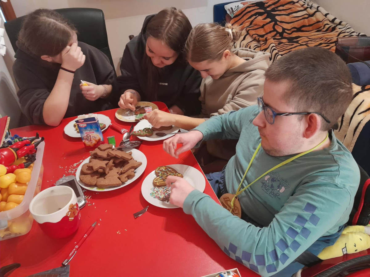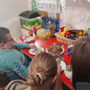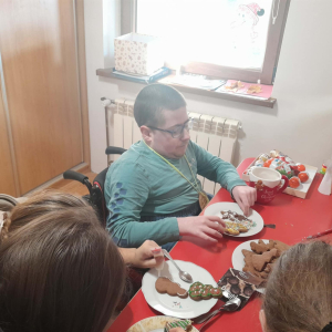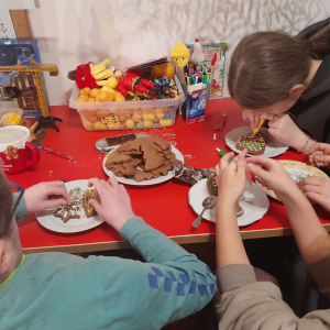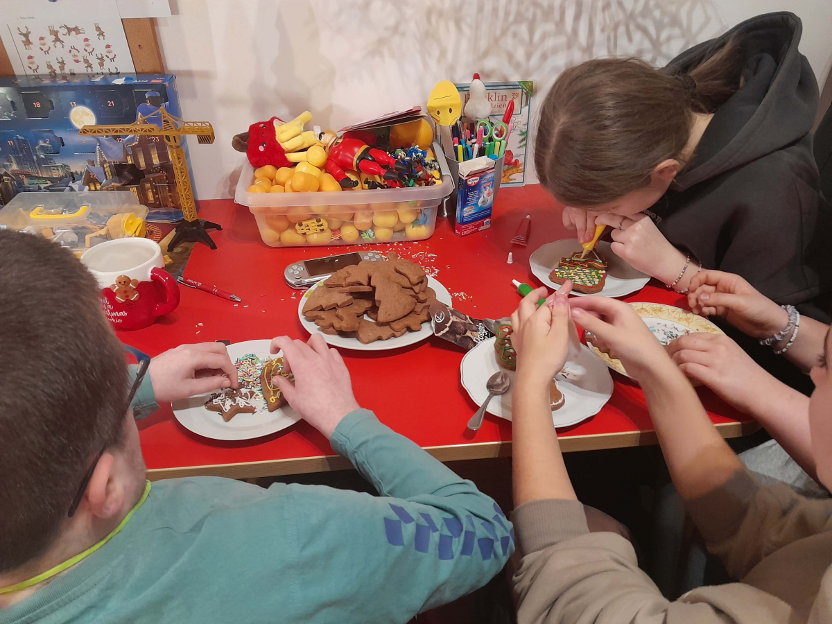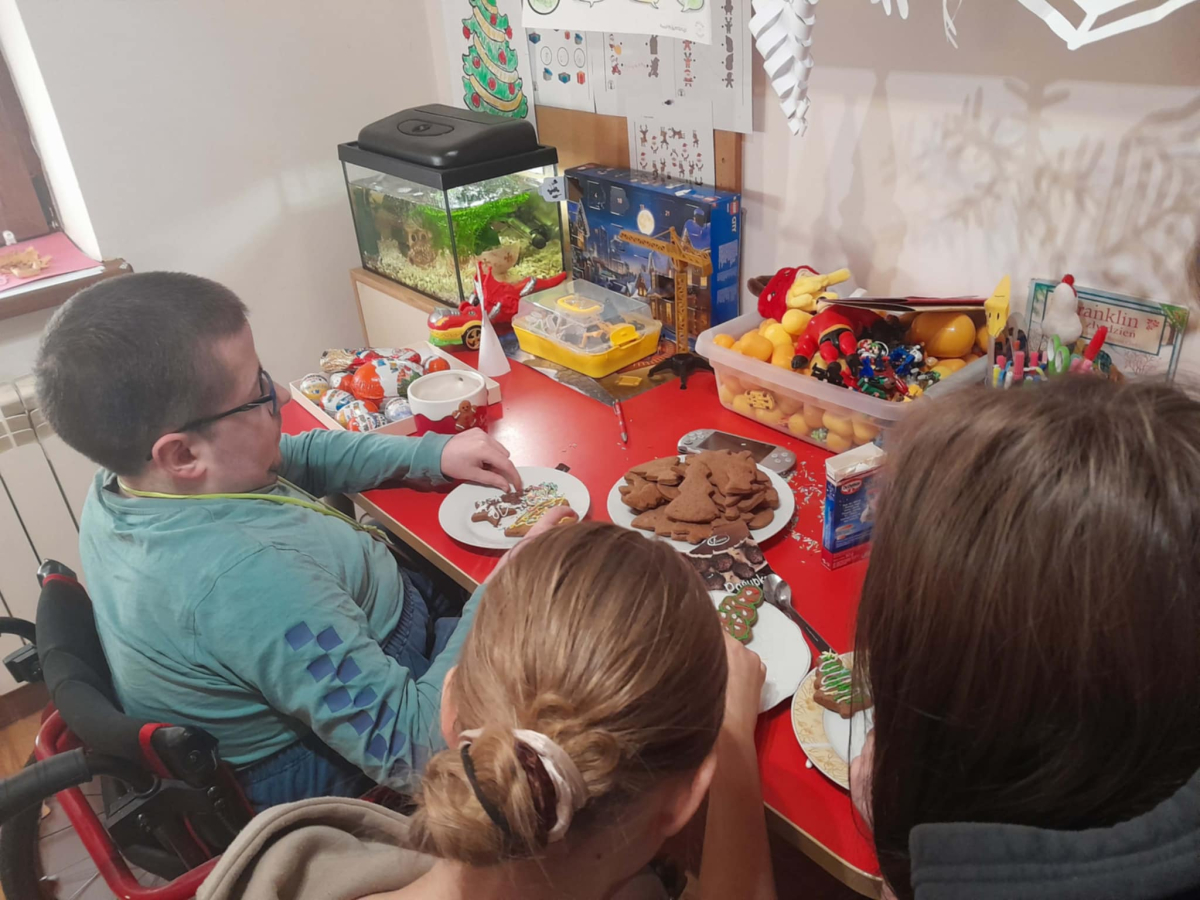 W ramach szkolnych i klasowych mikołajek pojechaliśmy w odwiedziny do Rafała Kozieła, ucznia naszej szkoły. Uczennice klasy VIII przywiozły dla niego piękny prezent - podarunek od całej klasy. Następnie wspólnie dekorowaliśmy pyszne pierniczki upieczone dzień wcześniej przez Rafała i Panią Ewelinę.