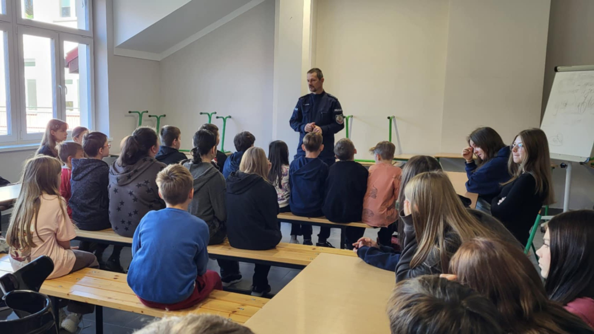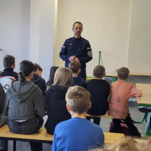 Dziękujemy funkcjonariuszowi policji za poświęcony czas oraz przekazanie wiedzy w sposób ciekawy i dostosowany do wieku odbiorców.