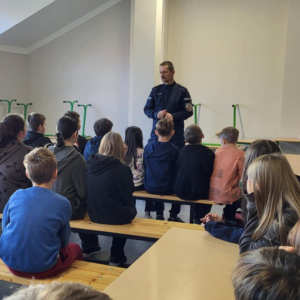 Uczniowie aktywnie uczestniczyli w spotkaniu, chętnie odpowiadali na pytania, podawali przykłady z własnego życia i z zainteresowaniem słuchali przekazywanych treści. Spotkanie było wartościową lekcją odpowiedzialności, profilaktyki i świadomego podejmowania decyzji.