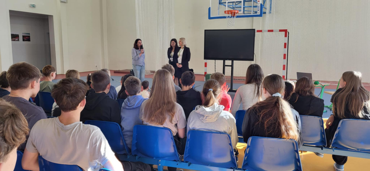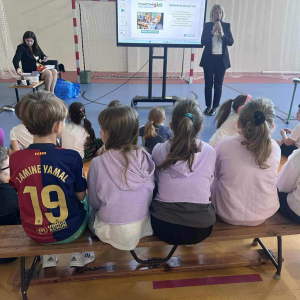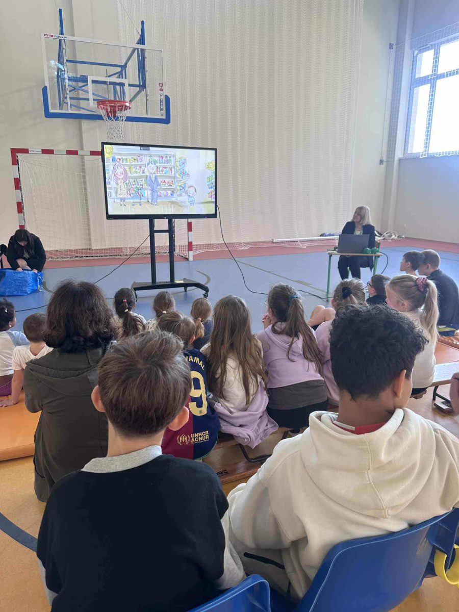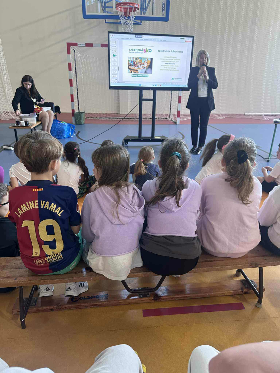 Następnie przedstawiono uczniom zasady oszczędzania – od prostych pomysłów na odkładanie drobnych kwot, po sposoby planowania większych celów finansowych. Uczniowie dowiedzieli się, jak można oszczędzać na co dzień, zarówno w domu, jak i w szkole. Panie podały wiele praktycznych propozycji, jak mądrze gospodarować pieniędzmi i świadomie podejmować decyzje zakupowe. Spotkanie wzbogaciły również krótkie filmiki edukacyjne, dzięki którym uczniowie nauczyli się rozpoznawać, czy banknot nie jest fałszywy. Zdobyta wiedza z pewnością pomoże uczniom lepiej zrozumieć świat finansów i nauczy ich odpowiedzialnego podejścia do pieniędzy.