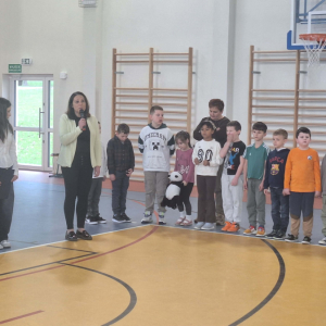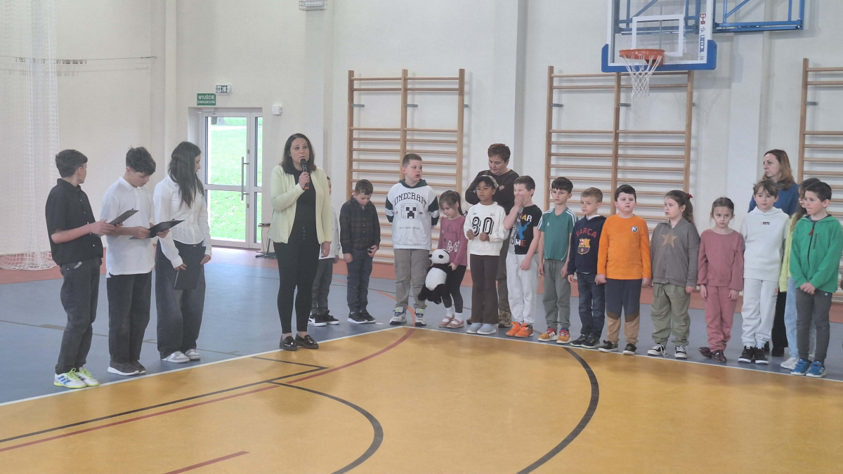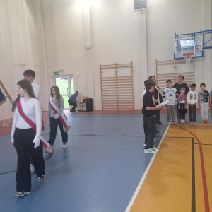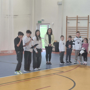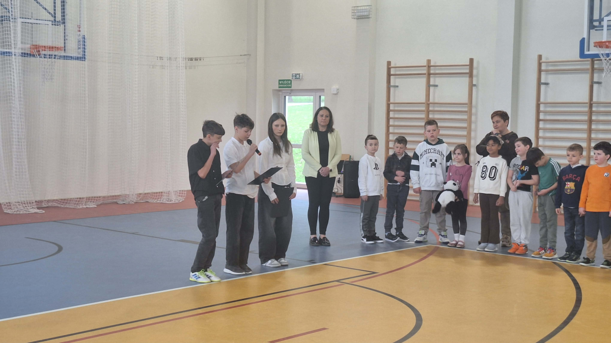 Pani Dyrektor Edyta Woźniak zabrała głos, podkreślając znaczenie Chrztu Polski dla rozwoju naszego państwa, kultury i tożsamości narodowej. W swoim wystąpieniu zwróciła uwagę na to, że decyzja Mieszka I miała wpływ na kształtowanie się polskiej administracji, prawa, szkolnictwa oraz przynależności do kręgu kultury łacińskiej. Po przemówieniu uczniowie klas VII i VIII zaprezentowali przygotowaną część historyczną. Przypomnieli okoliczności związane z przyjęciem chrztu przez Mieszka I, omówili jego konsekwencje dla rozwoju państwa oraz znaczenie tego wydarzenia dla współczesnej Polski.