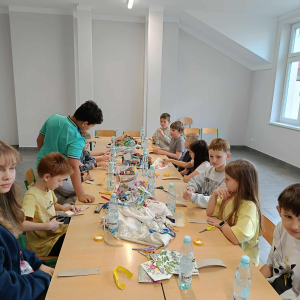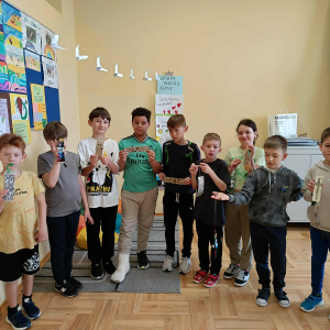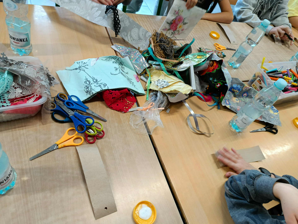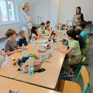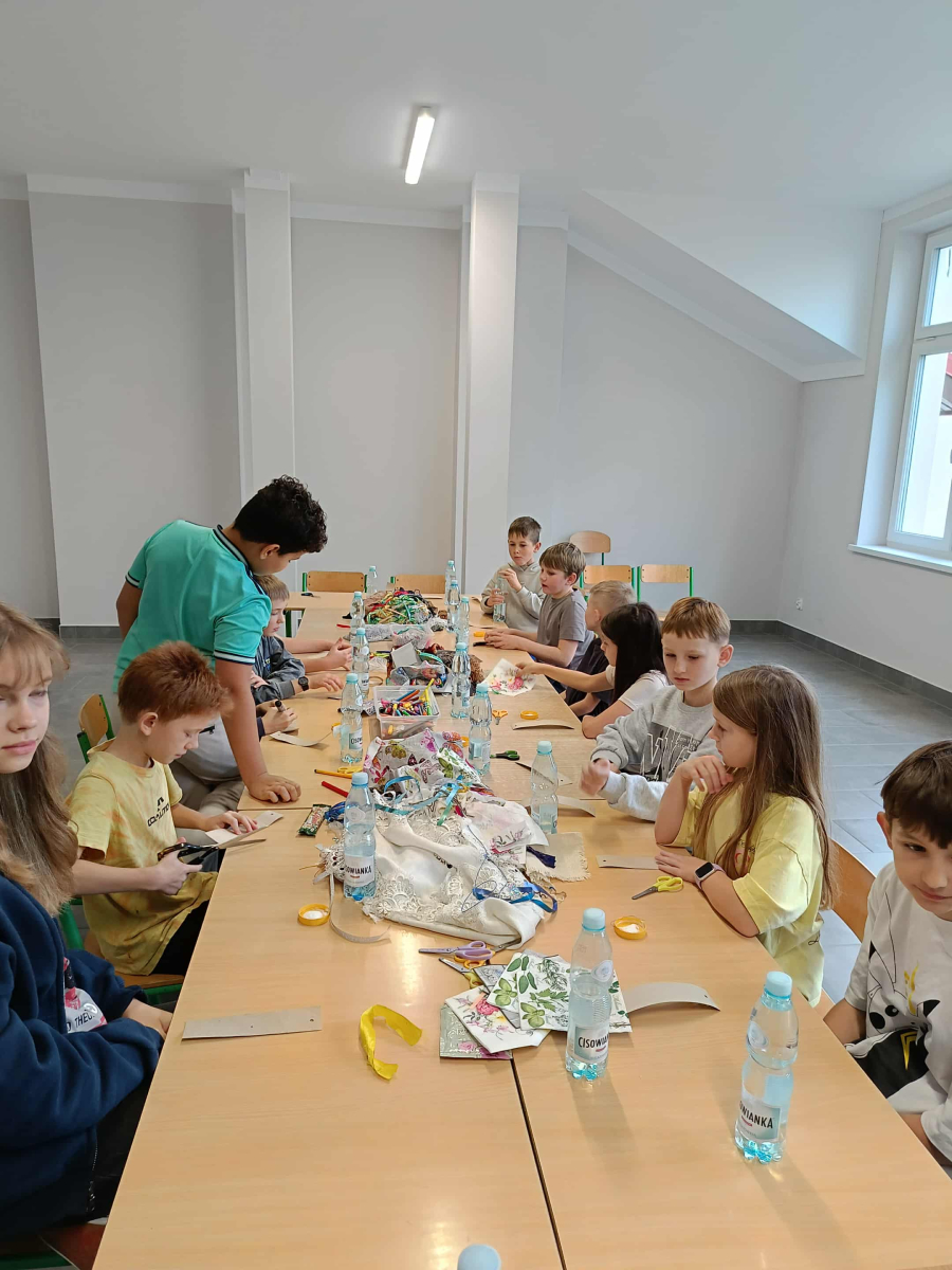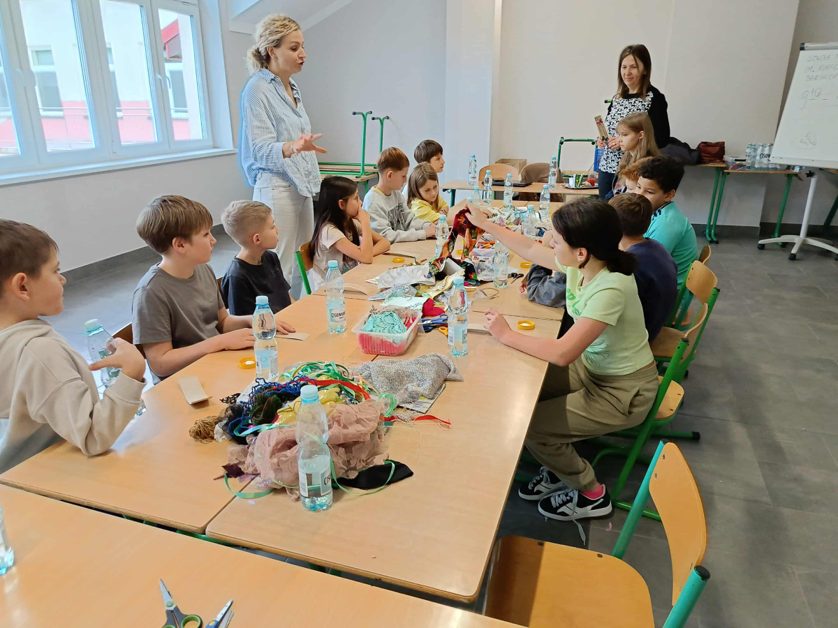 Uczniowie klas II–VII mieli okazję poszerzyć swoją wiedzę na temat recyklingu oraz poznać technikę upcyklingu, czyli twórczego wykorzystania odpadów w nowy sposób. Podczas zajęć uczestnicy wzięli udział w quizie ekologicznym w aplikacji Kahoot, a następnie wykonali własnoręcznie zakładki do książek z różnorodnych materiałów.
