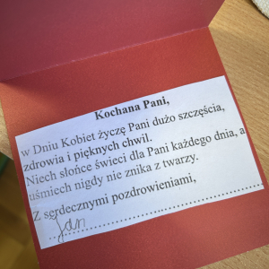 Mamy nadzieję, że nasze odwiedziny przyniosły mieszkańcom wiele radości i ciepła, a przygotowane kartki stały się miłym gestem z okazji zbliżającego się Dnia Kobiet.