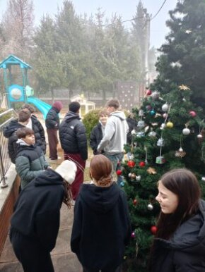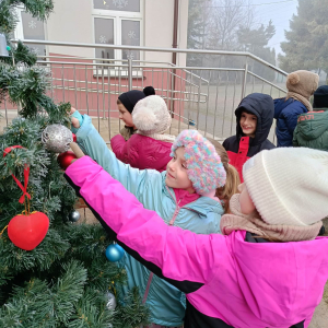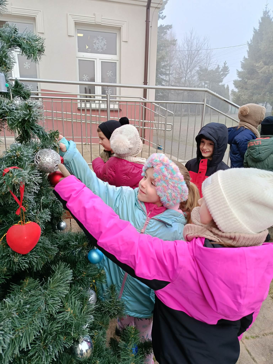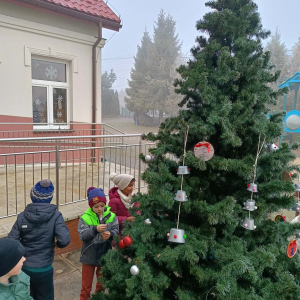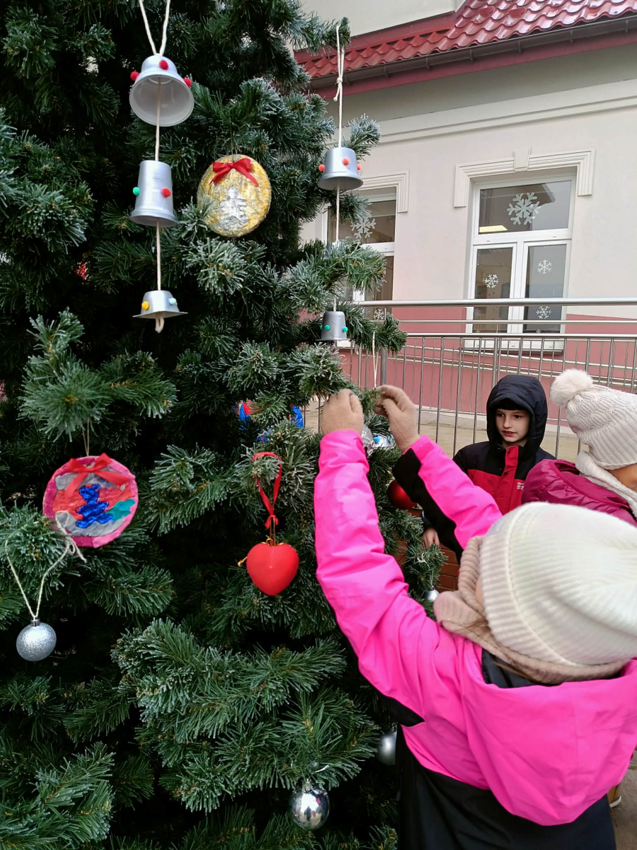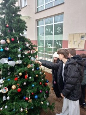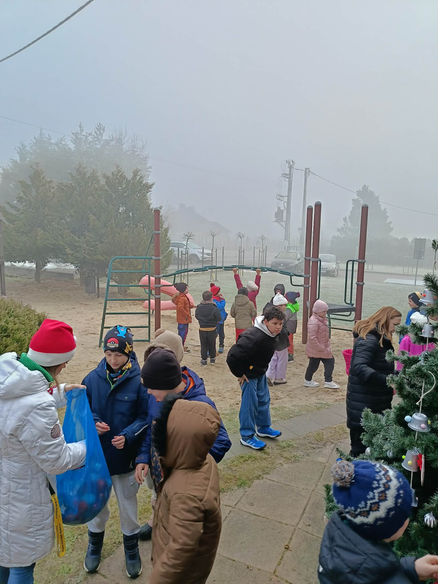 15 grudnia przed naszą szkołą odbyło się wspólne ubieranie choinki, które już po raz drugi zgromadziło uczniów i nauczycieli. Wydarzenie to powoli staje się szkolną tradycją. Jako pierwsze choinkę dekorowały klasy 1–3, a następnie uczniowie klas starszych. Drzewko zostało ozdobione głównie własnoręcznie wykonanymi ozdobami choinkowymi, pełnymi kolorów i kreatywności. Wspólne dekorowanie było radosnym momentem integracji całej społeczności szkolnej i wprowadziło wszystkich w świąteczny nastrój.