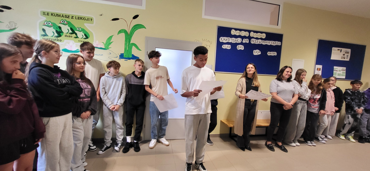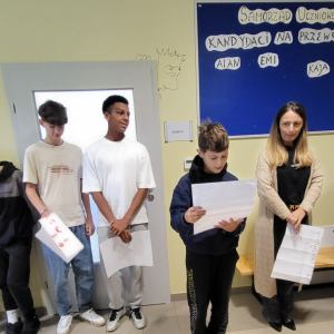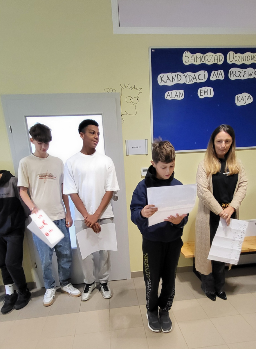 W wyniku głosowania przewodniczącym Samorządu Uczniowskiego został Alan Zawiła z klasy VII, który zdobył największą liczbę głosów. Pozostali kandydaci zostali wybrani na zastępców przewodniczącego i będą wspierać Alana w realizacji zadań samorządu w bieżącym roku szkolnym. Wszystkim kandydatom gratulujemy odwagi, zaangażowania i chęci działania na rzecz naszej szkolnej społeczności. Życzymy sukcesów, wielu ciekawych inicjatyw i owocnej współpracy!