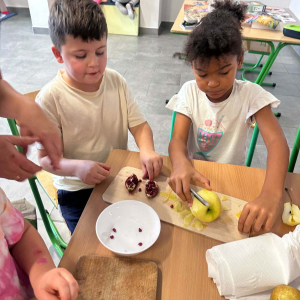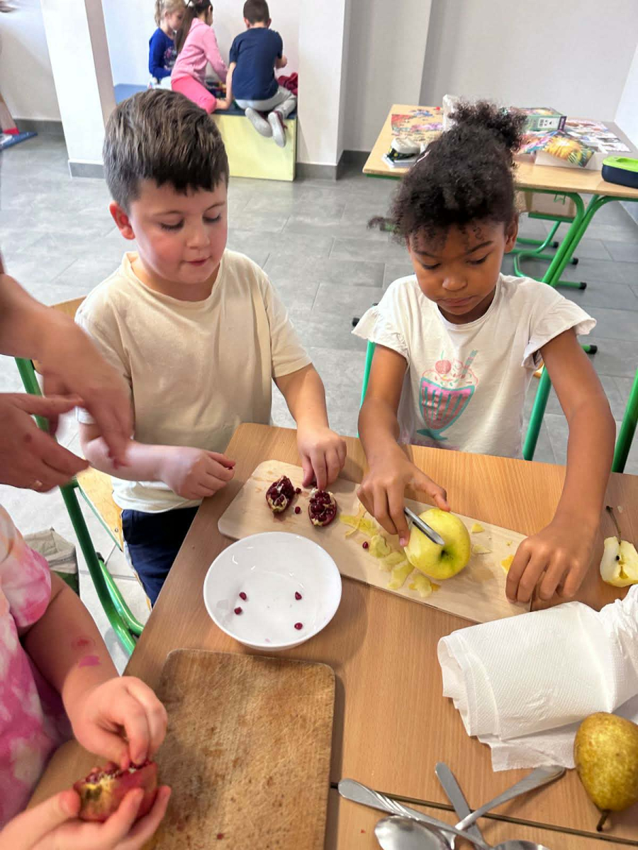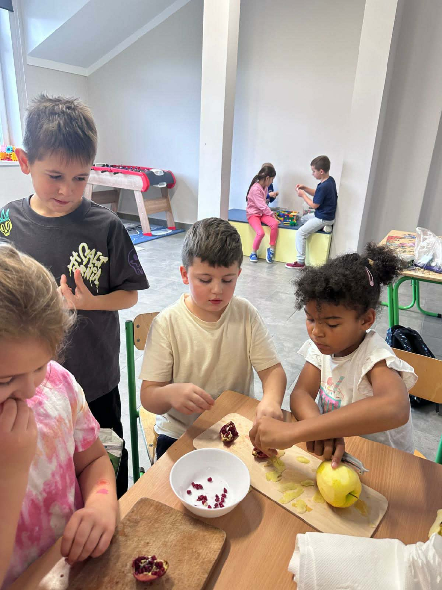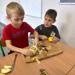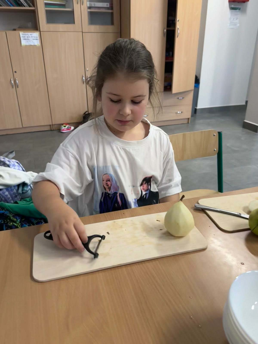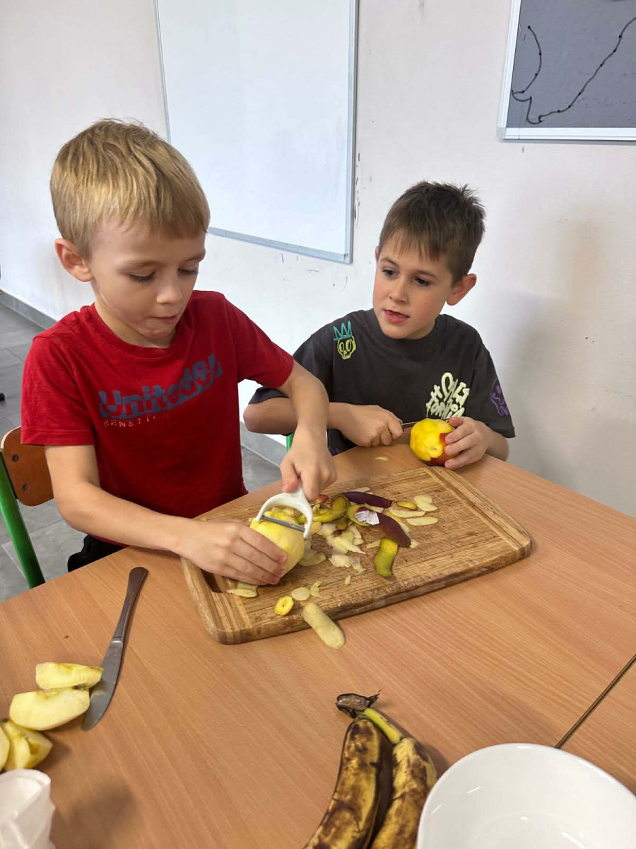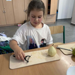 W listopadzie robiliśmy sałatkę owocową. Niektórzy mieli okazję popróbować nowych smaków tj. granat czy mango. Sałatka smakowała wyśmienicie, częstowaliśmy też panie nauczycielki.
